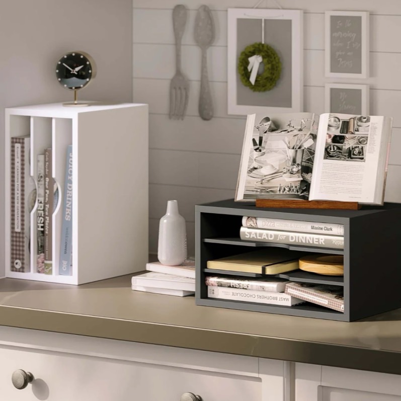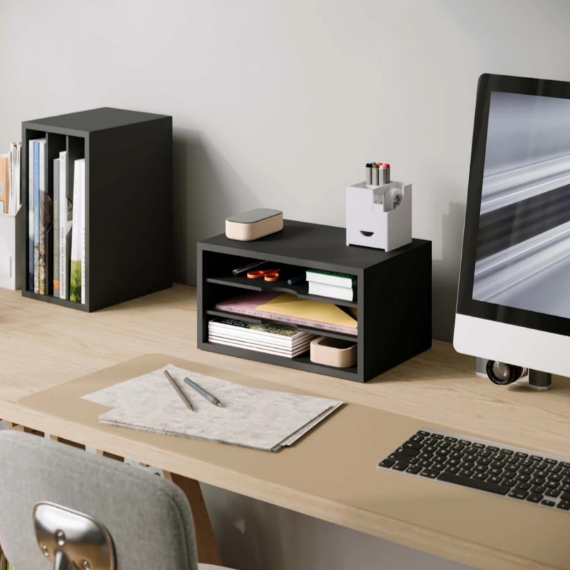 This desk organizer shelf is functional and versatile with a classic yet timeless design. The top shelf of this desk tray organizer can even hold taller and larger items.