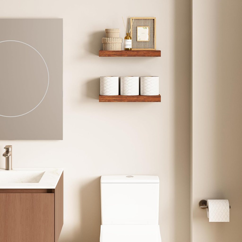These modern wood floating shelves will elevate your decor in kids room, above a desk, fireplace, between windows, entryway, vanity and more
