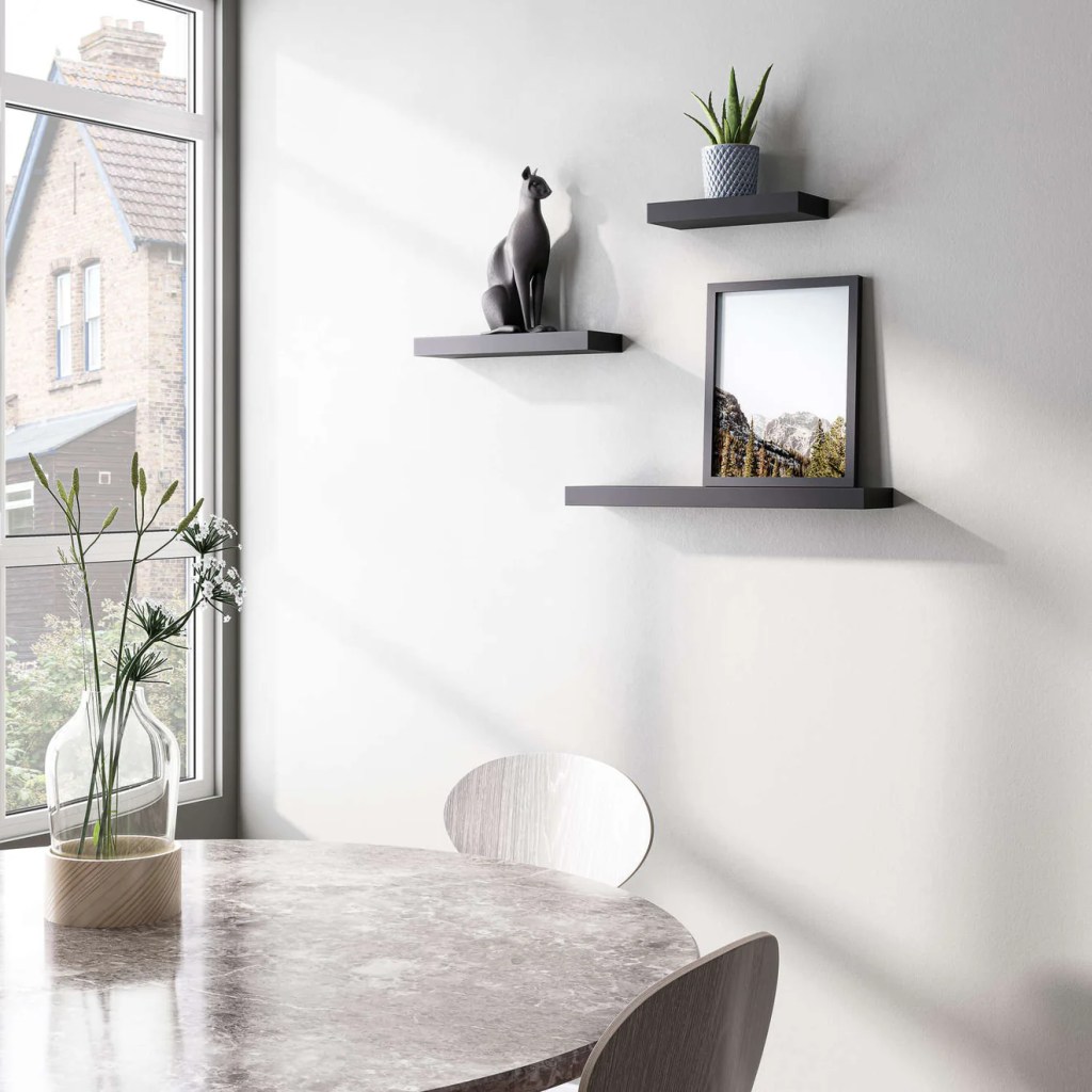 DESIGN: Designed to add simplicity and elegance to any room, these floating shelves with lip will securely hold picture frames, books and knick-knacks
